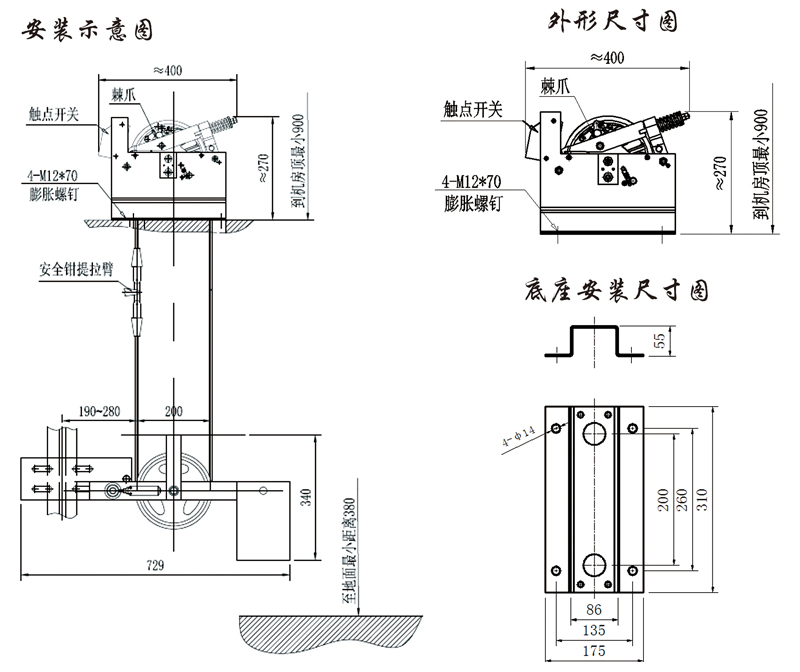 2、鋼絲繩漲緊力:F:800N≤F≤1500N